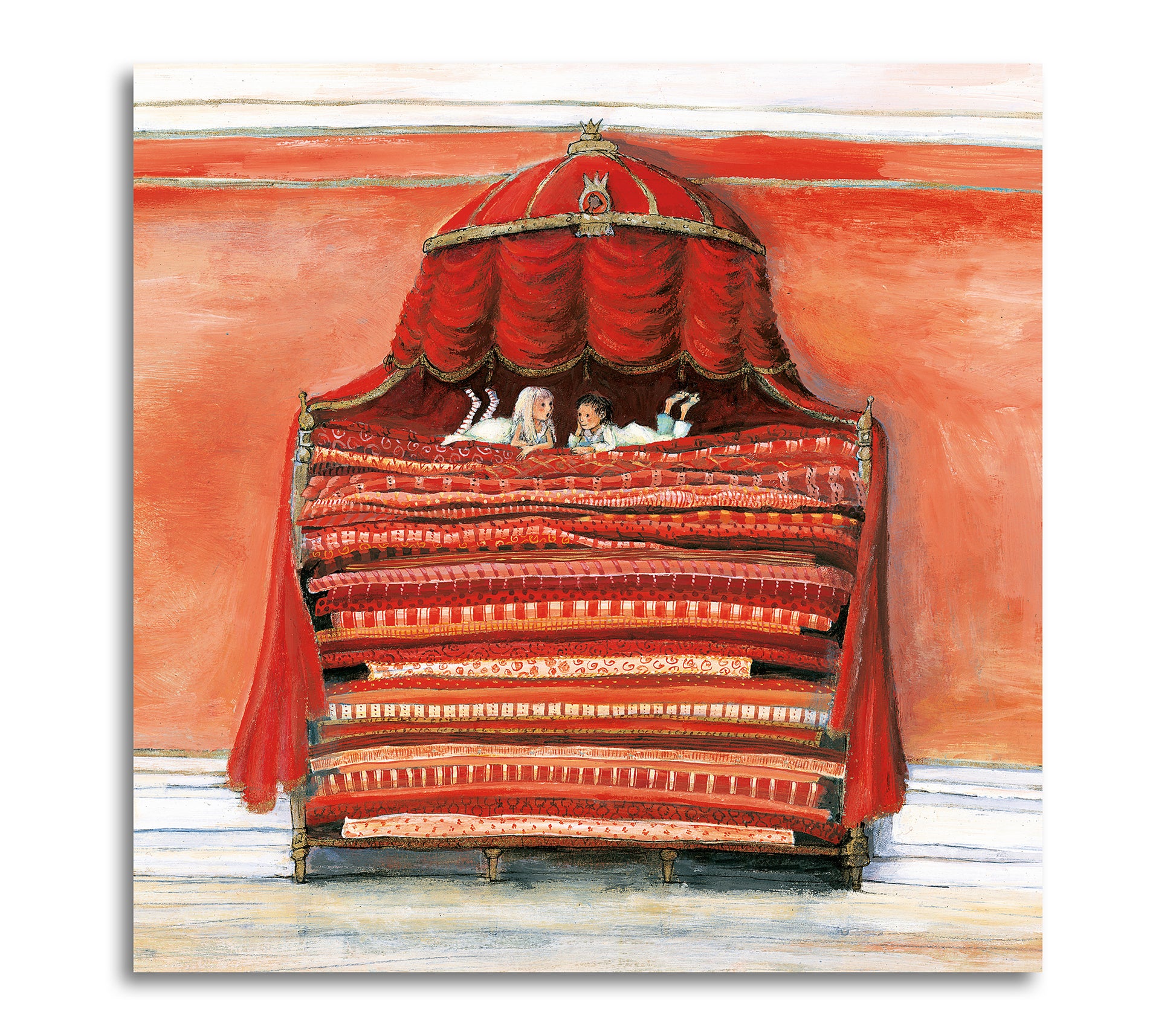Printad på canvasduk. Levereras uppspänd på kilram i trä, färdig att hängas upp.