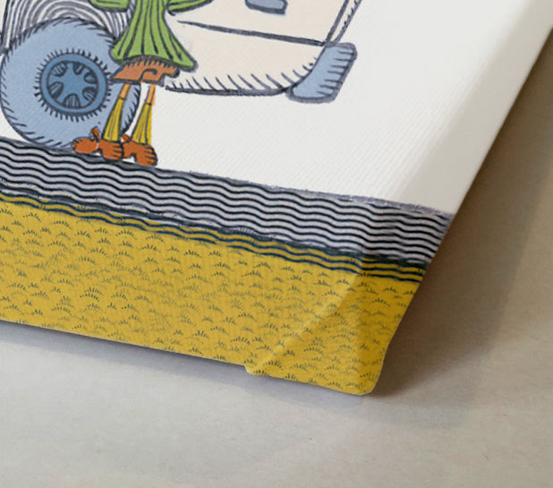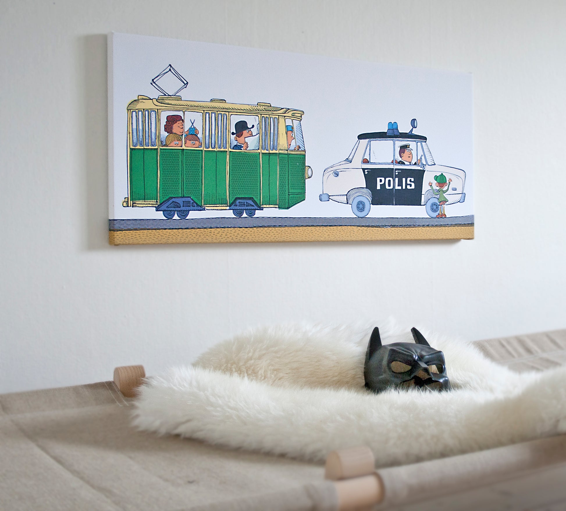 Printad på canvasduk. Levereras uppspänd på kilram i trä, färdig att hängas upp.
