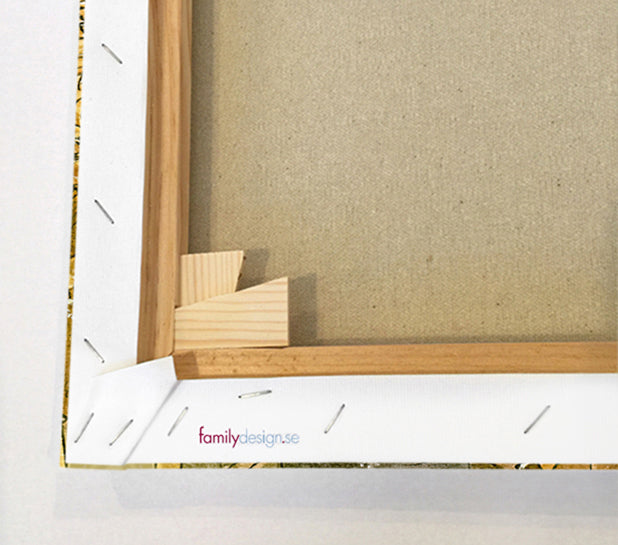 Printad på canvasduk. Levereras uppspänd på kilram i trä, färdig att hängas upp.